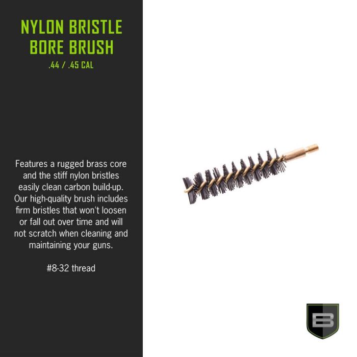GUN CLEANING BRUSH: This .22 / .223 Cal / 5.56mm bore brush features a #8-32 thread, rugged brass core & stiff nylon bristles to attack heavy carbon build-up in your firearm. Our gun brush is a handy accessory to add to your rifle cleaning kit.